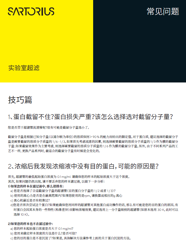 由于超滤管使用不恰当或是超滤知识缺乏引起的问题,简直成了实验汪们蛋白实验不成功、效率低下的最常见原因之一。比如说: